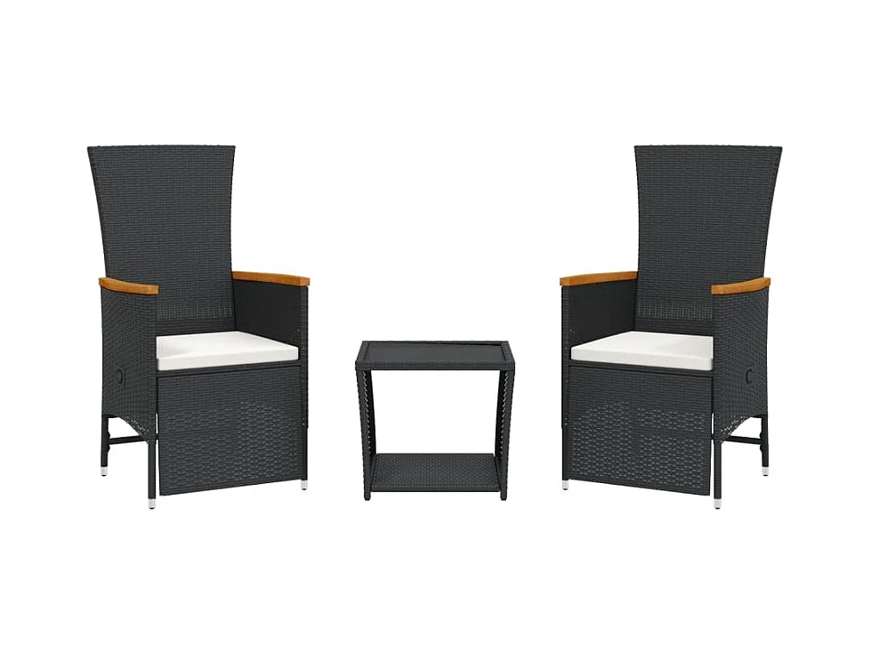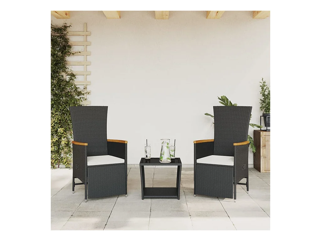 Ensemble de bistro 3 pcs et coussins noir résine tressée acacia FR84802