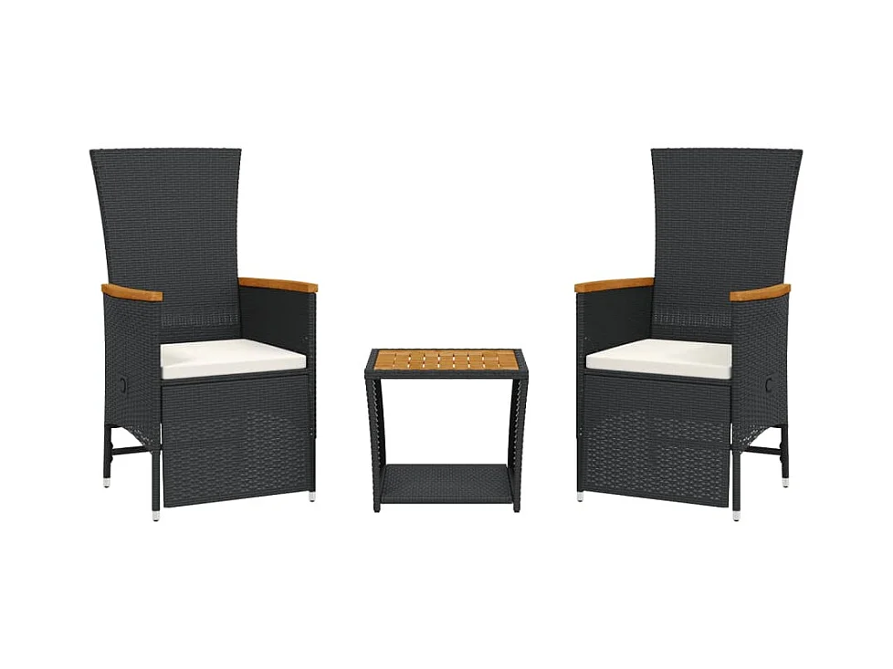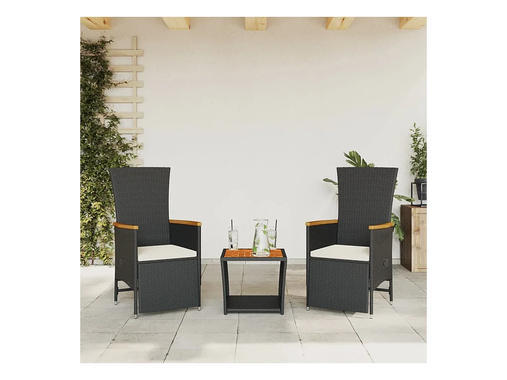 Ensemble de bistro 3 pcs et coussins noir résine tressée acacia FR84802