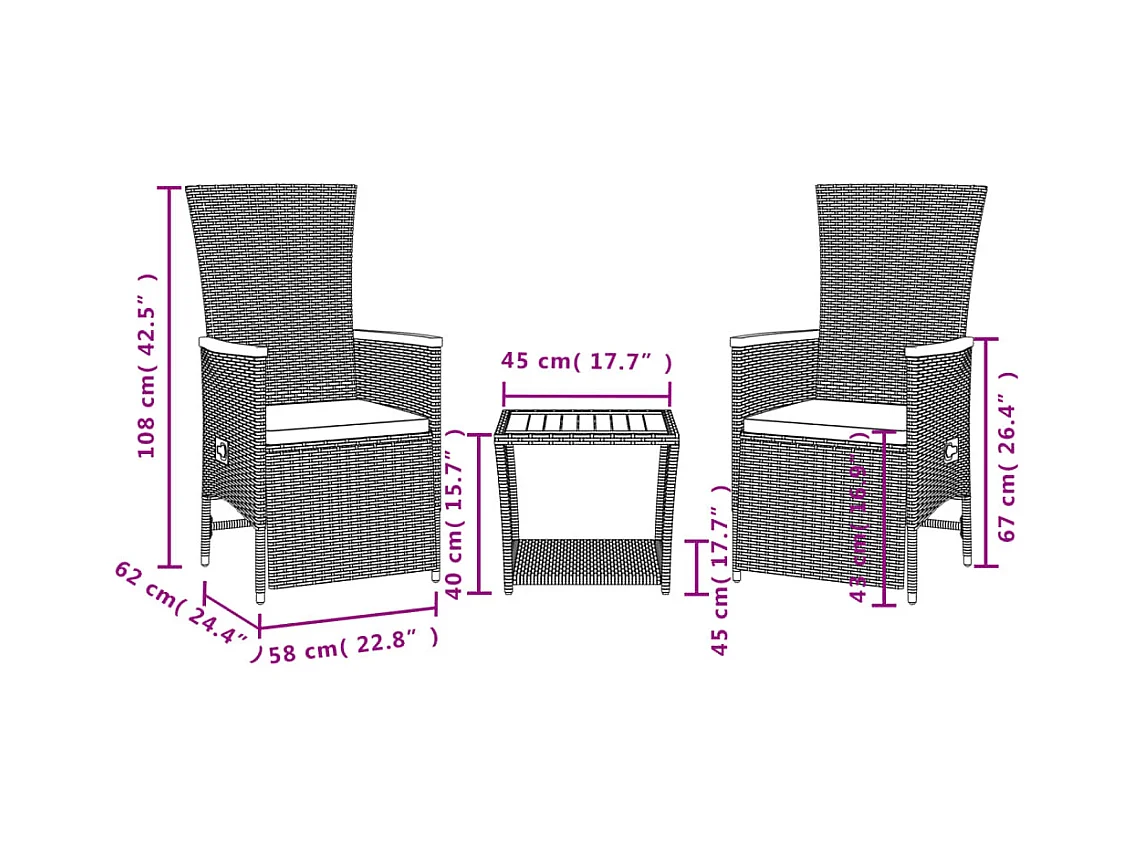 Ensemble de bistro 3 pcs avec coussins noir résine tressée FR75018
