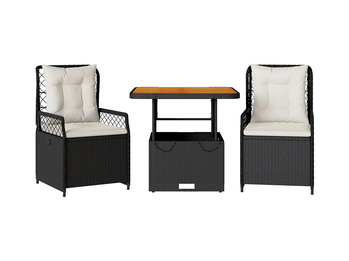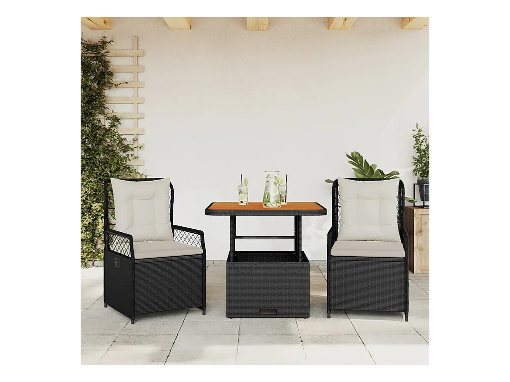 Ensemble de bistro 3 pcs avec coussins noir résine tressée FR73124