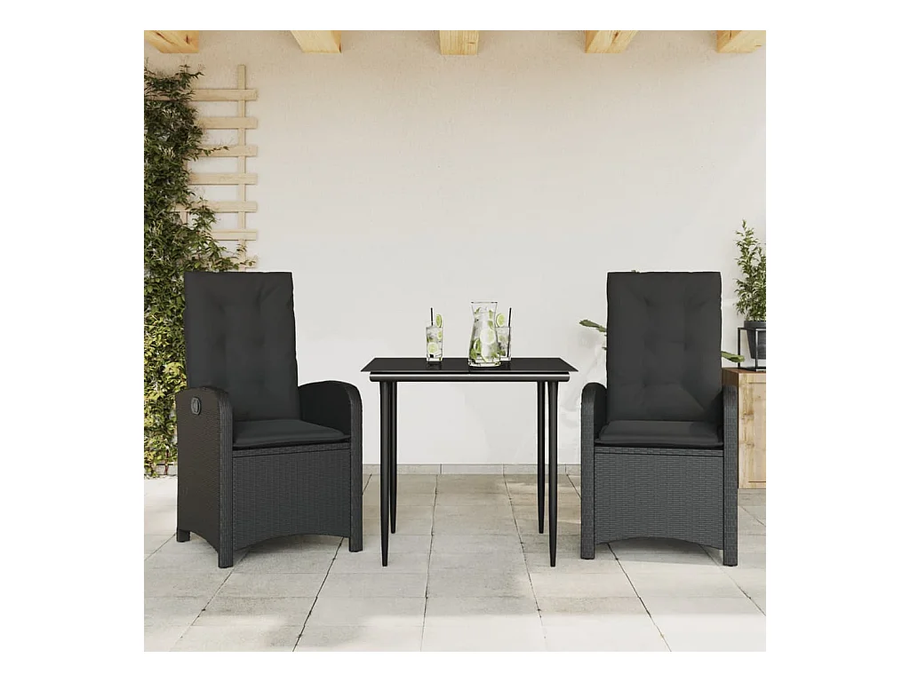 Ensemble à manger de jardin avec coussins 3 pcs Noir BE77692