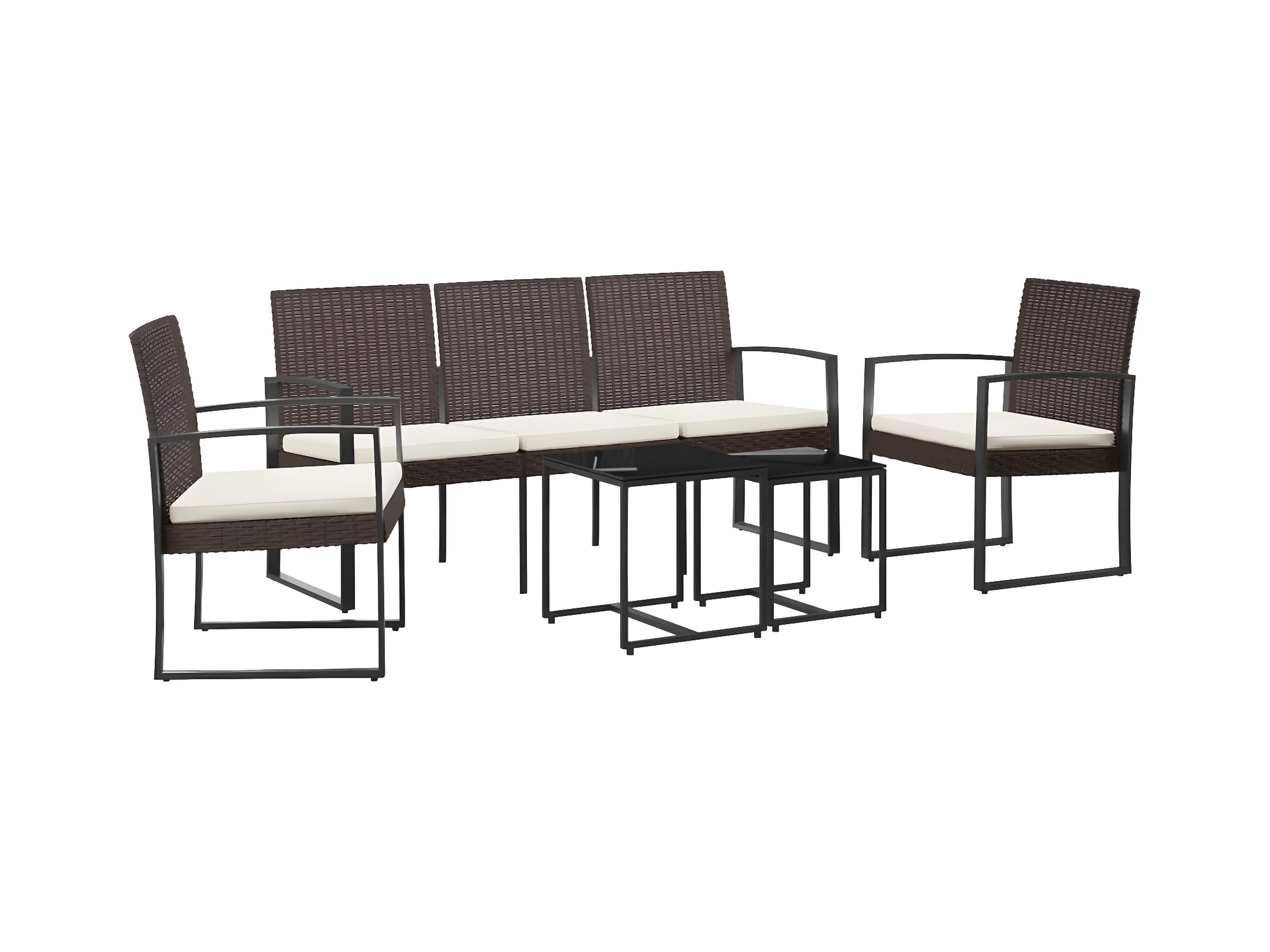 Ensemble à manger de jardin et coussins 5pcs marron rotin verre FR14809