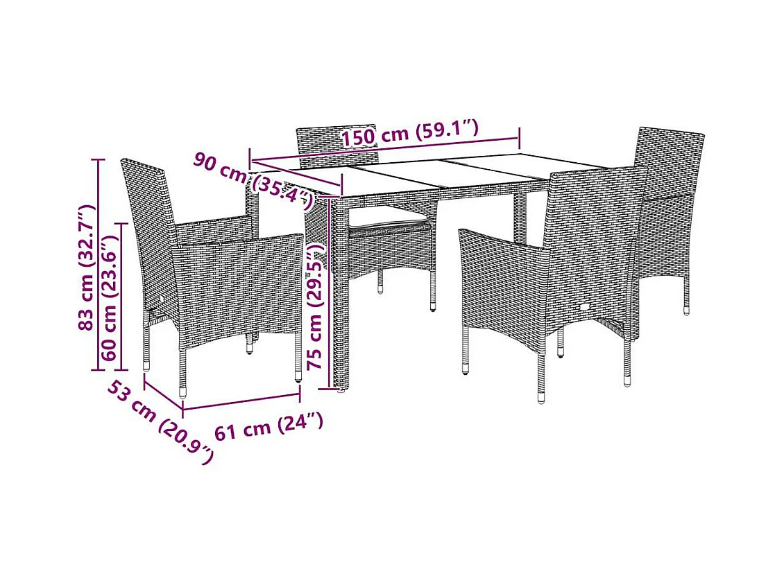 Ensemble à manger de jardin avec coussins 5 pcs rotin et verre