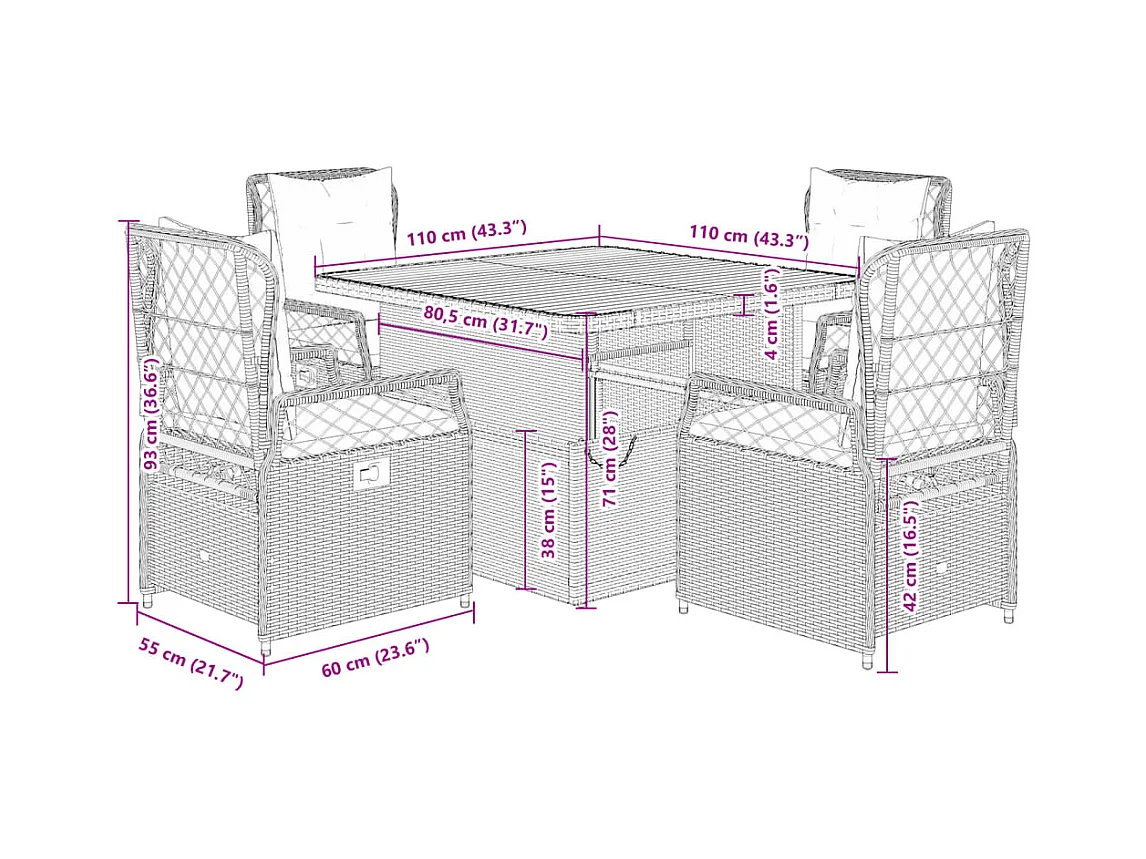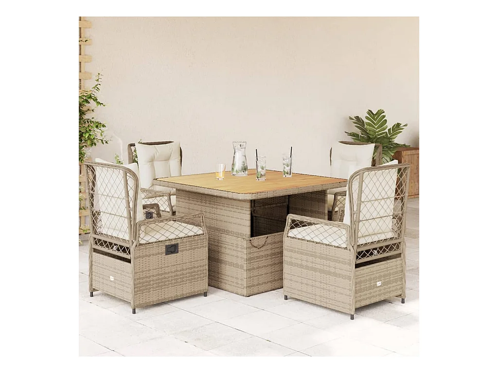 Ensemble à manger de jardin coussins 5 pièces mélange beige rotin