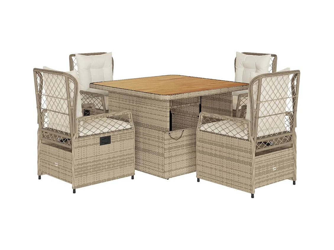 Ensemble à manger de jardin avec coussins 5 pièces Beige poly rotin