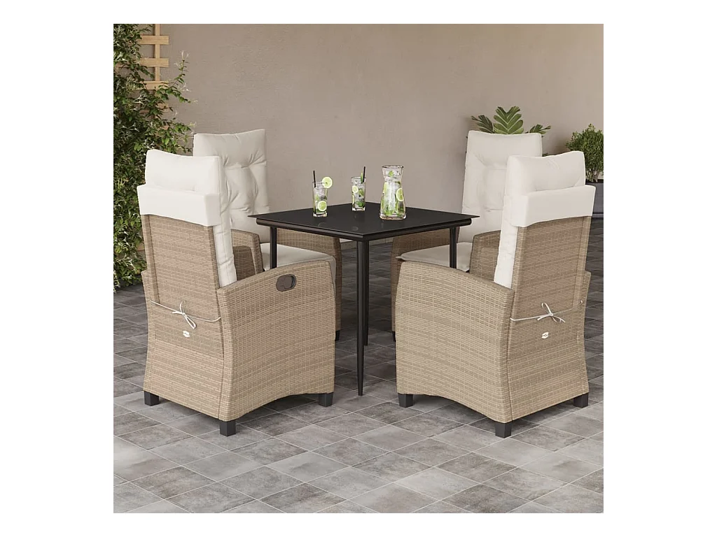 Ensemble à manger de jardin et coussins 5 pièces beige rotin verre