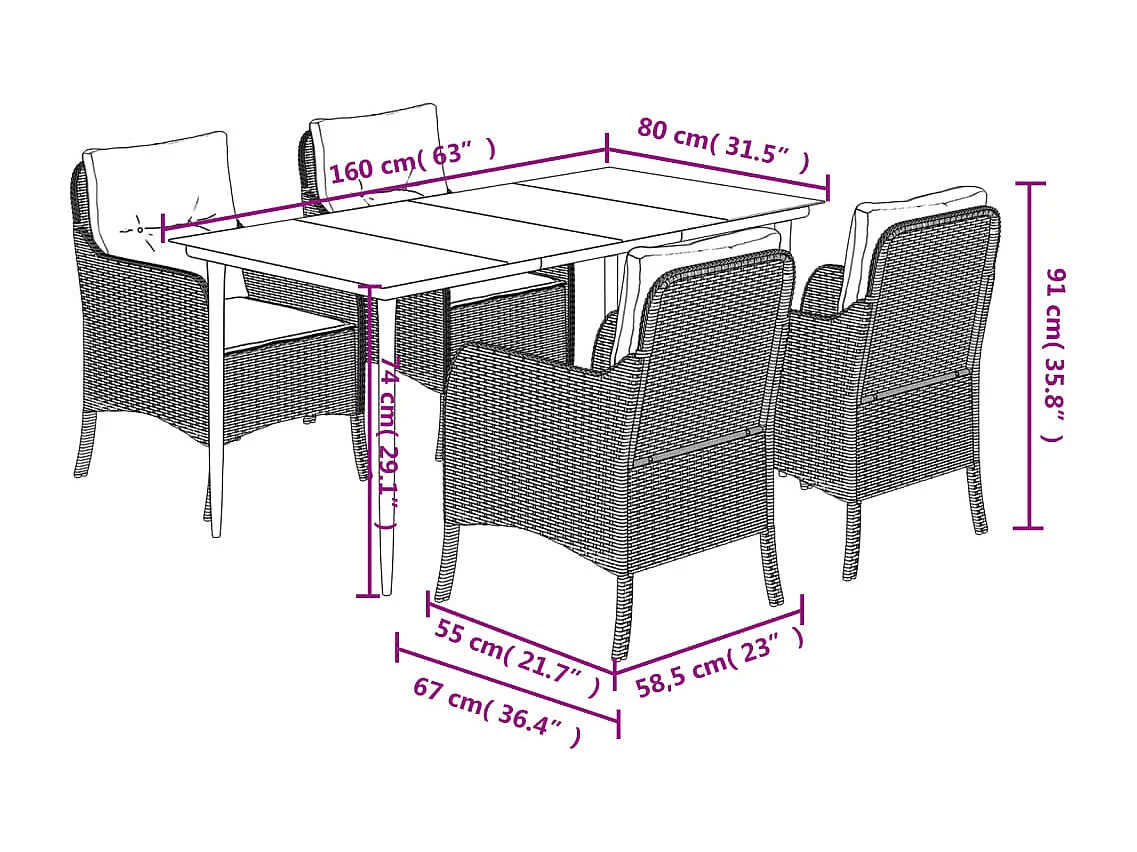 Ensemble à manger de jardin avec coussins 5pcs Beige poly rotin