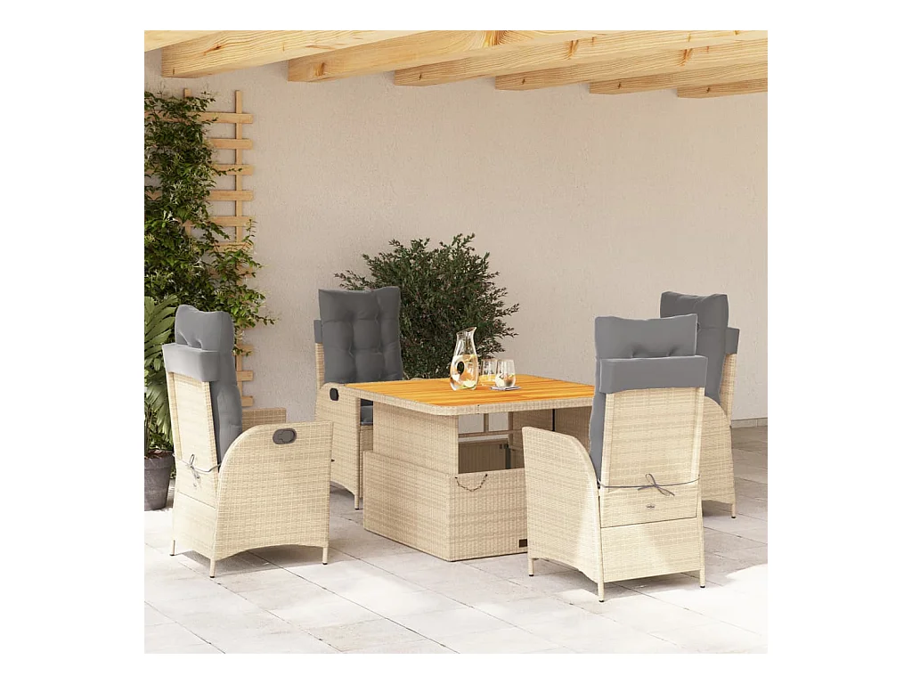 Ensemble à manger de jardin avec coussins 5pcs Beige poly rotin