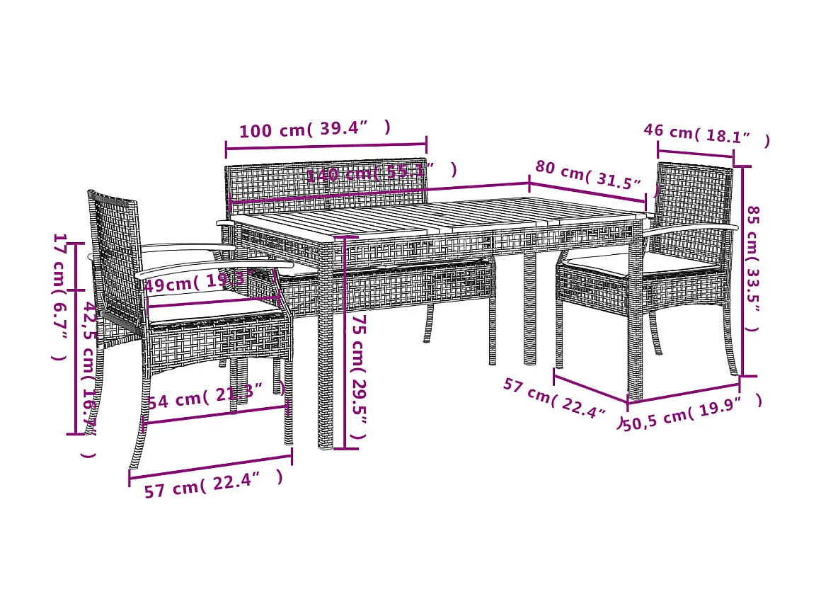 Ensemble à manger jardin 4pcs et coussins Gris Résine tressée