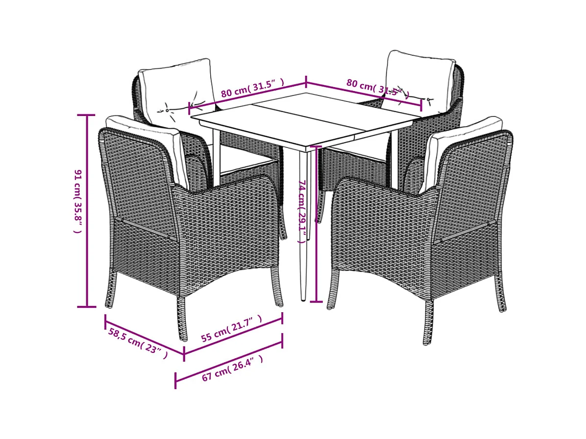Ensemble à manger de jardin coussins 5pcs Noir Résine tressée