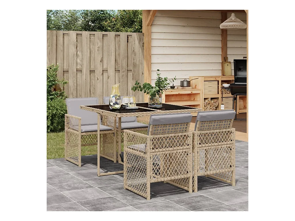 Ensemble à manger de jardin avec coussins 5pcs Beige poly rotin