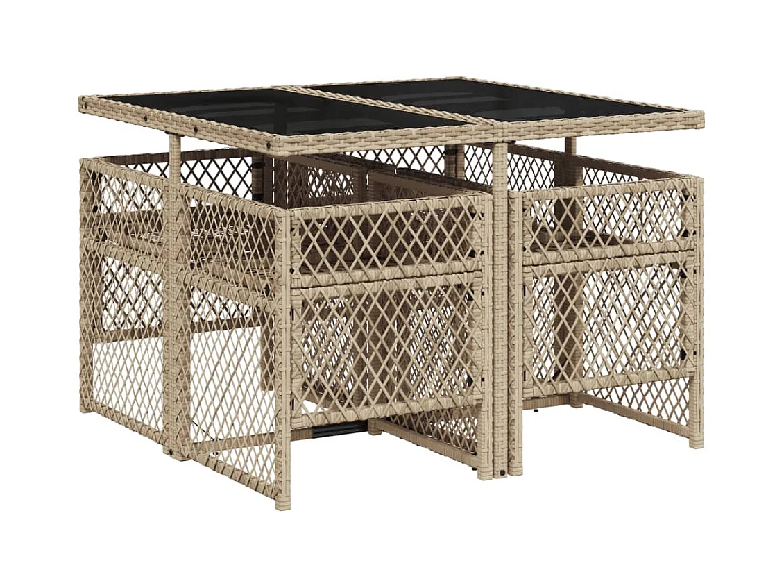 Tristan Ensemble à manger de jardin coussins 5 pcs mélange beige rotin