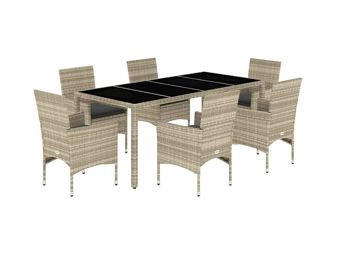 Ensemble à manger de jardin et coussins 7 pcs beige rotin verre