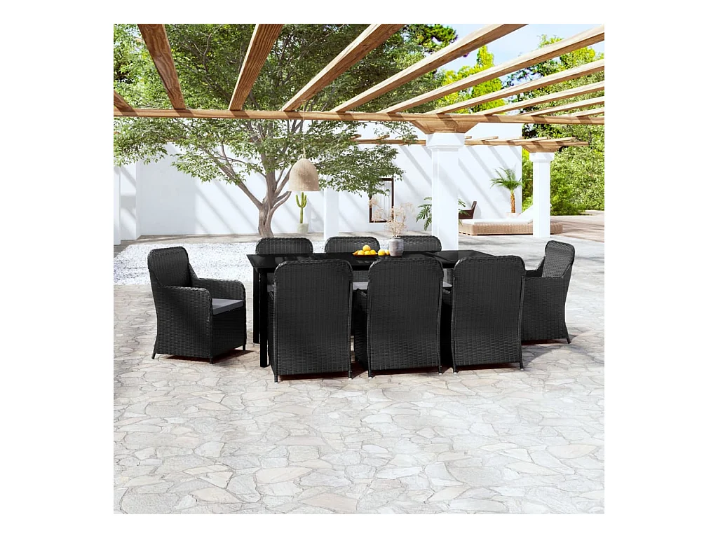 Ensemble à manger de jardin avec coussins 9 pcs noir