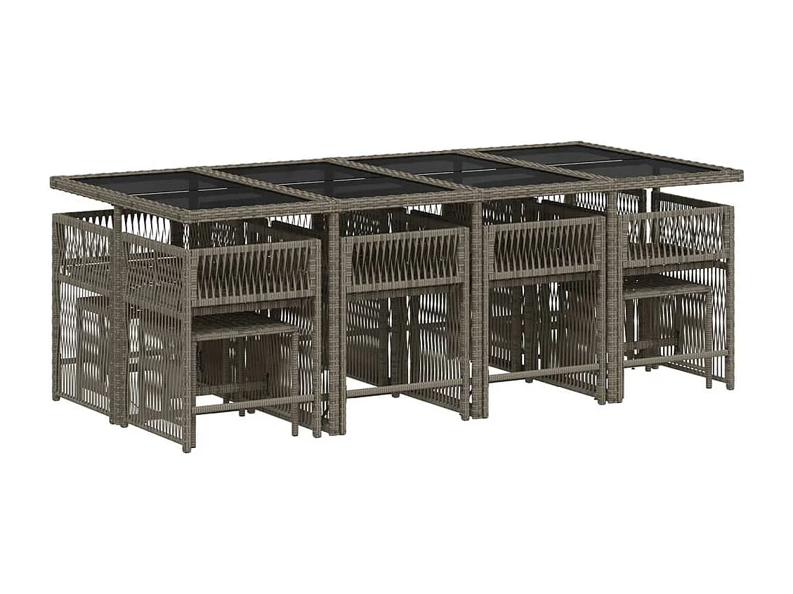 Ensemble à manger de jardin coussins 13 pcs gris résine tressée