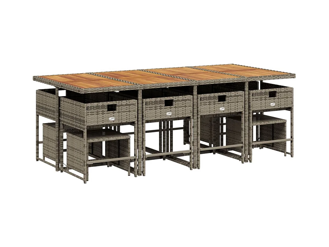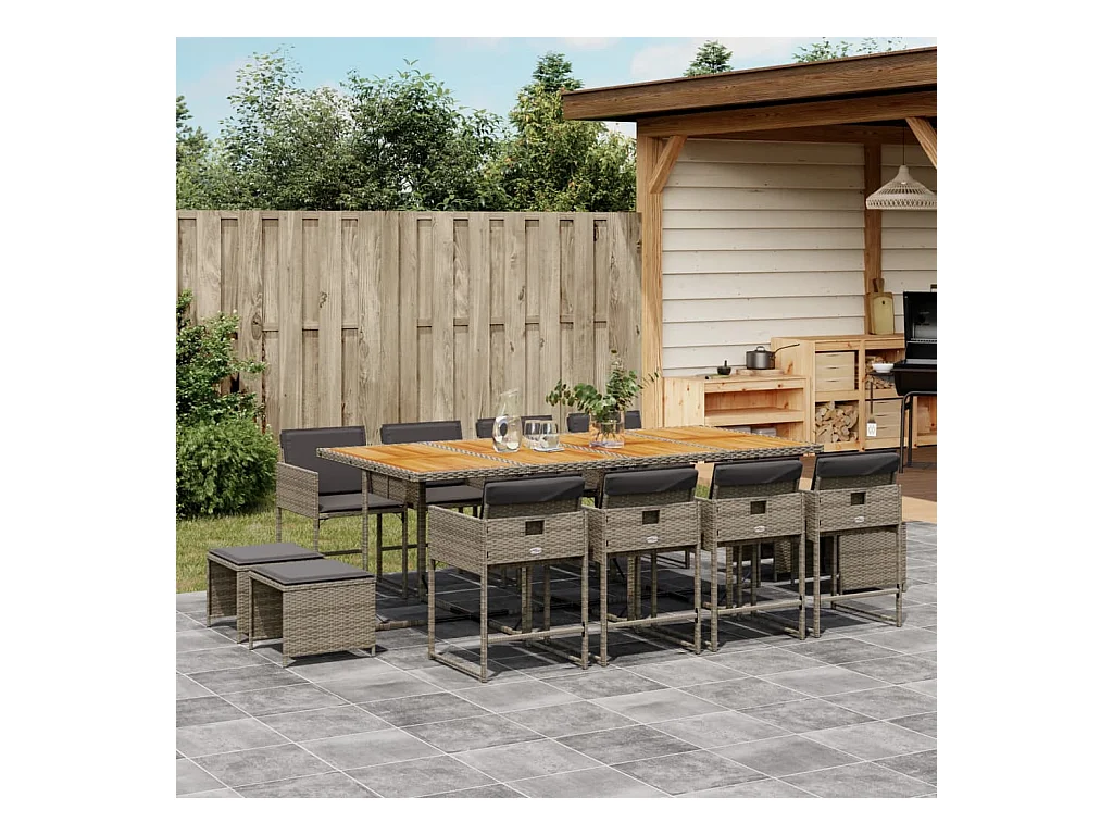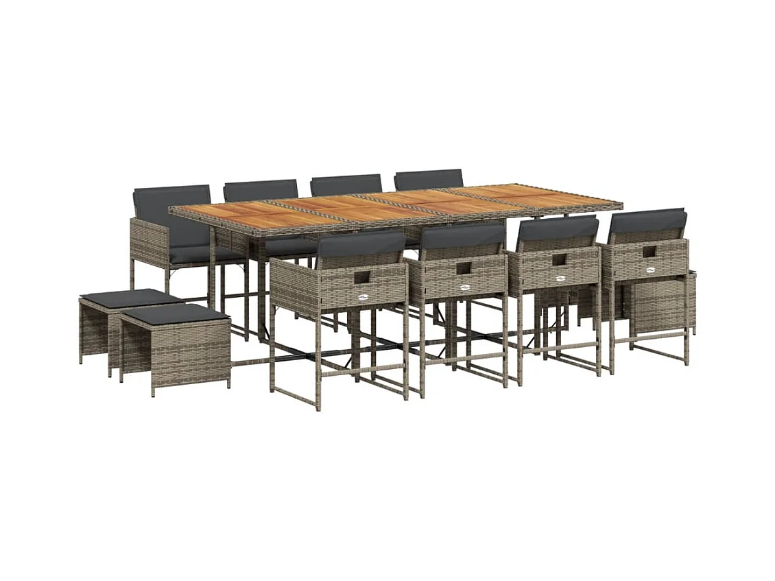 Ensemble à manger de jardin coussins 13 pcs gris résine tressée