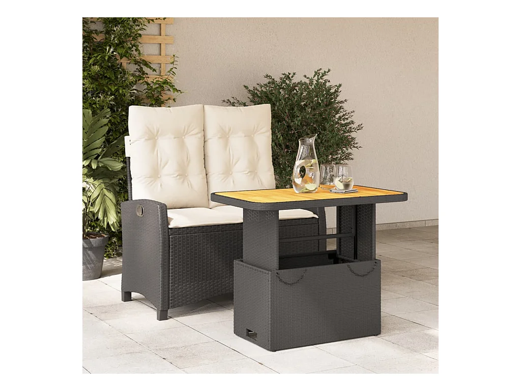 Ensemble à manger de jardin coussins 2pcs noir résine tressée FR14063