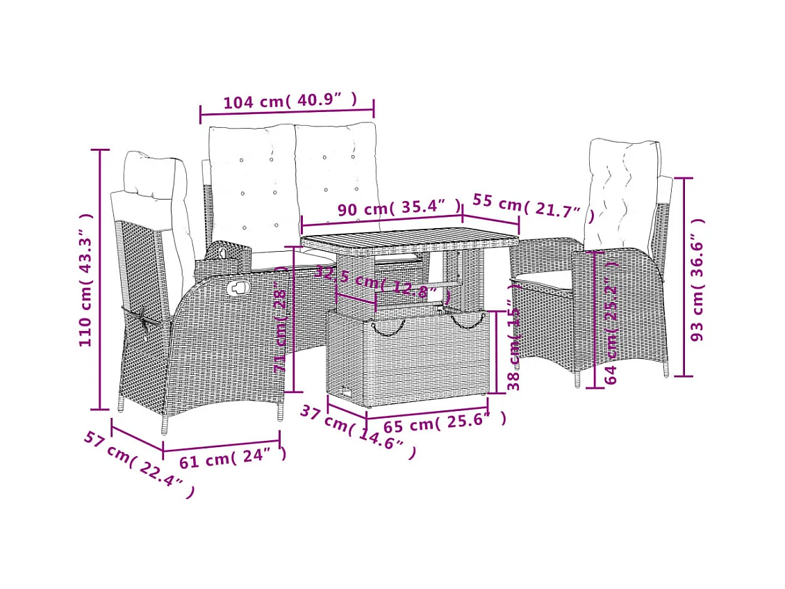 Ensemble à manger de jardin coussins 4 pcs beige résine tressée
