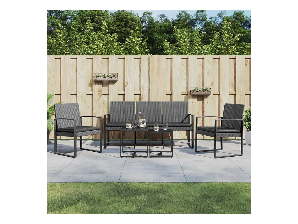 Ensemble à manger de jardin coussins 5 pcs gris foncé rotin PP