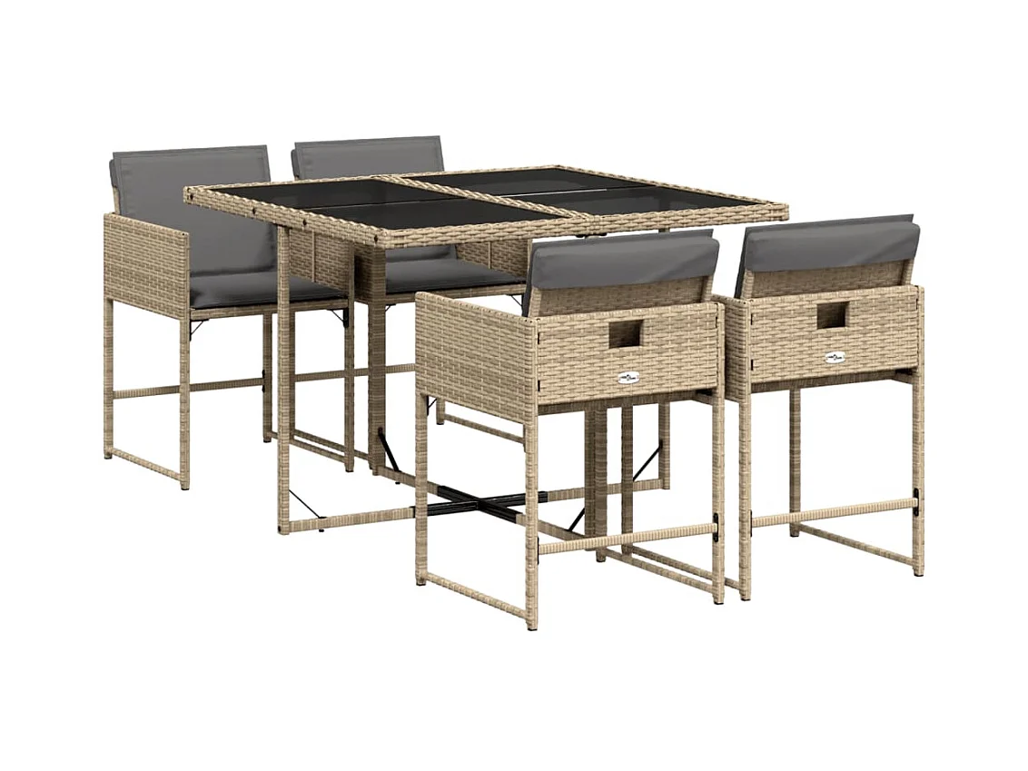 Ensemble à manger de jardin avec coussins 5pcs Beige poly rotin