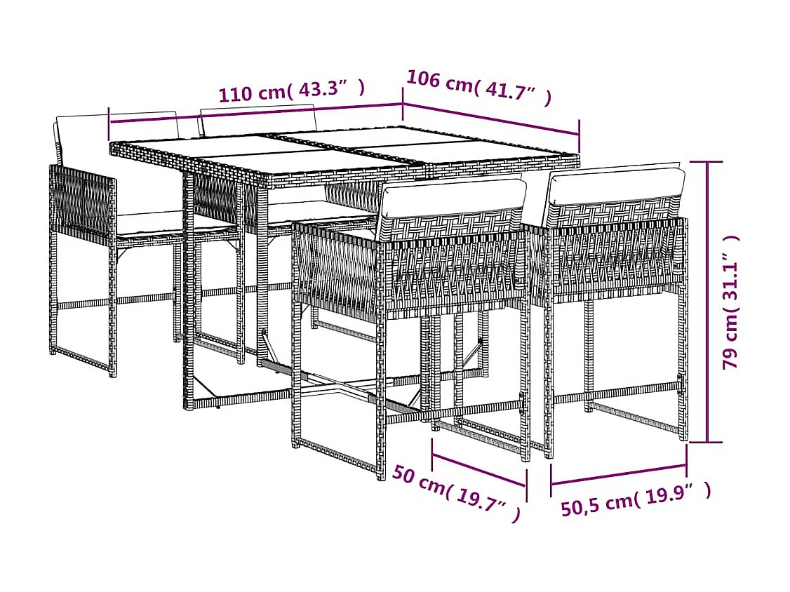 Ensemble à manger de jardin coussins 5 pcs mélange beige rotin