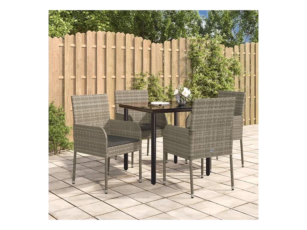 Ensemble à manger de jardin coussins 5 pcs noir et gris BE78077