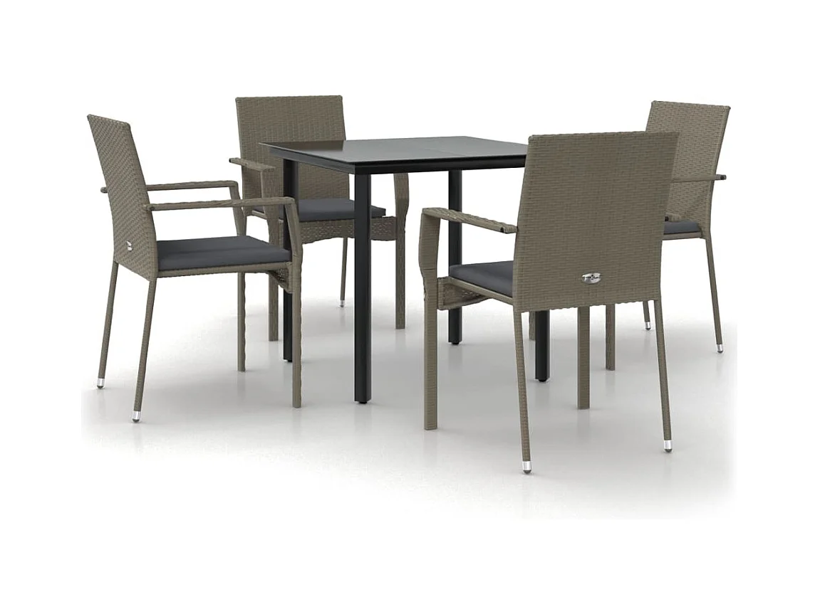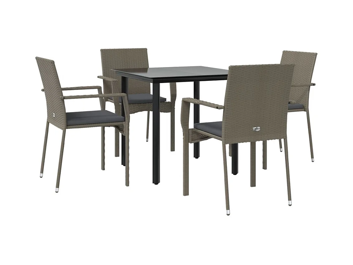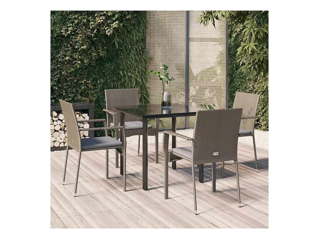 Ensemble à manger de jardin 5 pièces coussins gris résine tressée