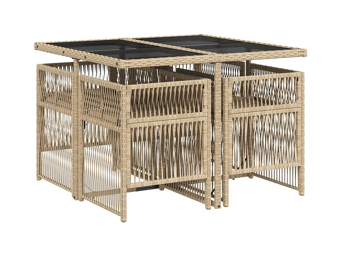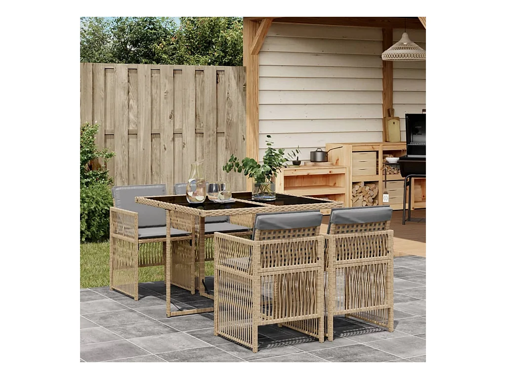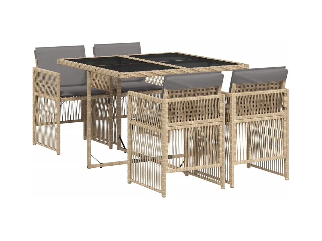 Ensemble à manger de jardin avec coussins 5 pièces Beige poly rotin