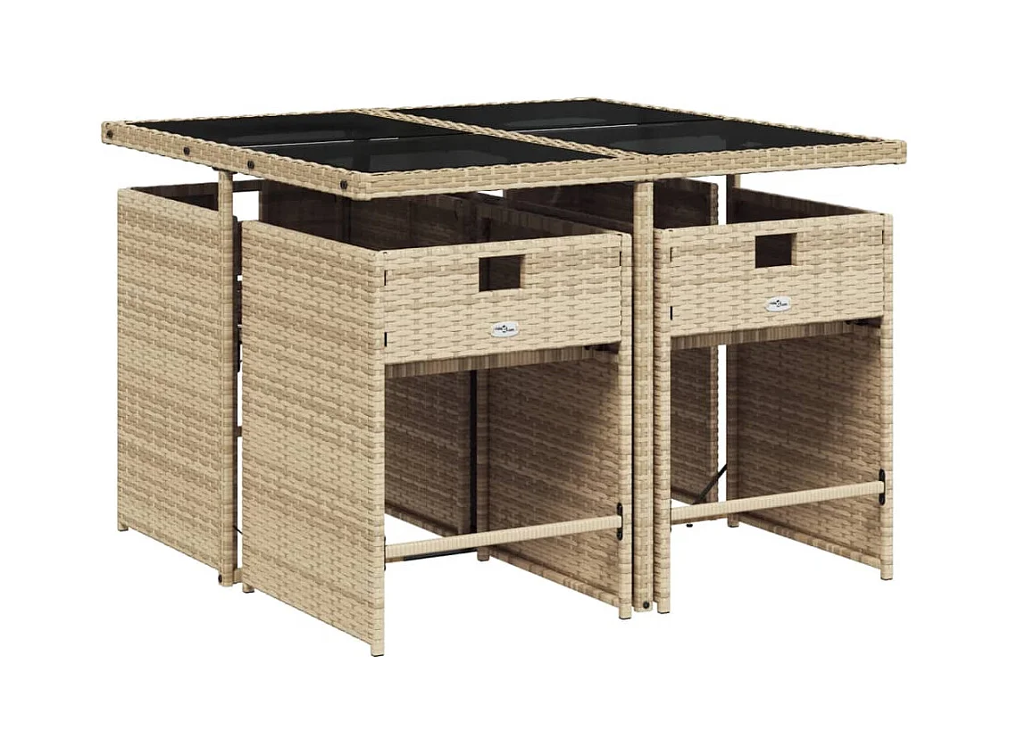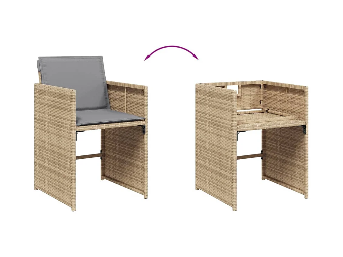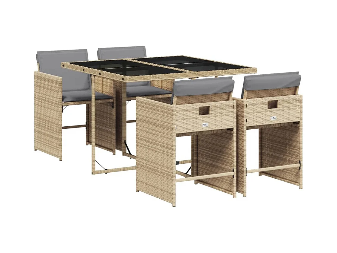 Ensemble à manger de jardin avec coussins 5 pièces Beige poly rotin