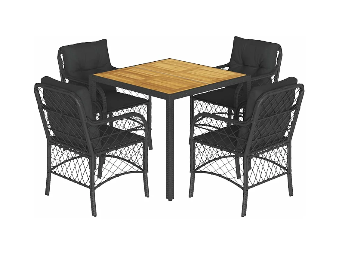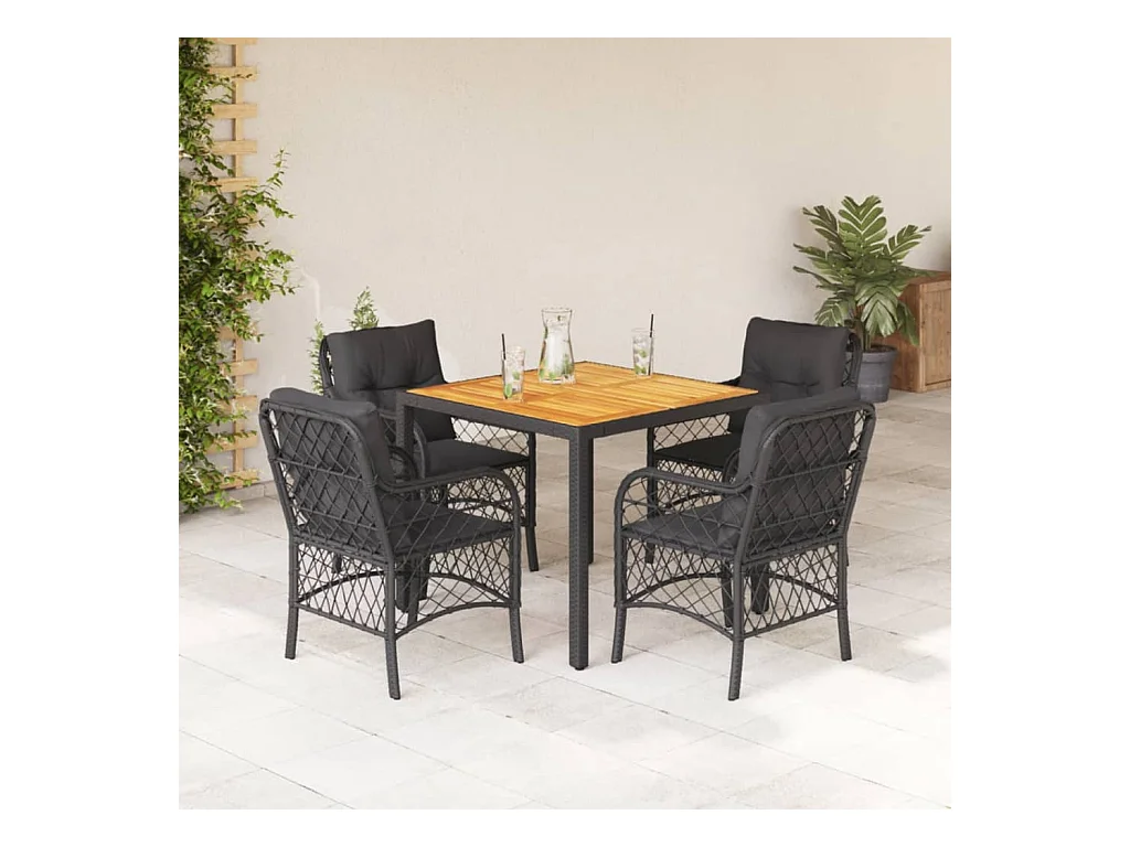 Ensemble à manger de jardin et coussins 5 pièces noir rotin acacia