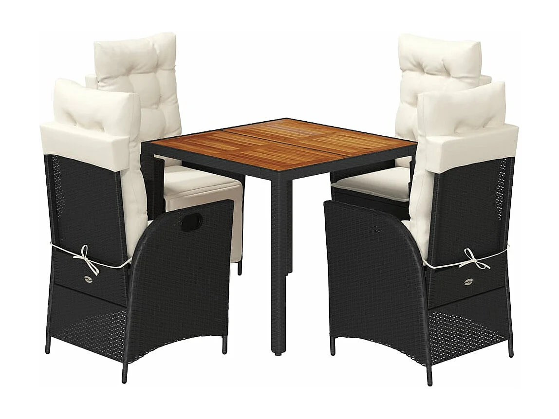 Ensemble à manger de jardin et coussins 5 pièces noir rotin acacia