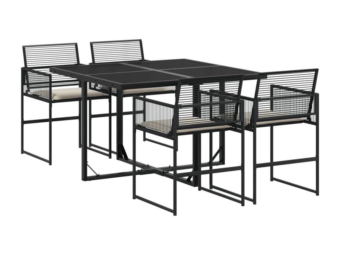 Ensemble à manger de jardin coussins 5 pièces noir résine tressée