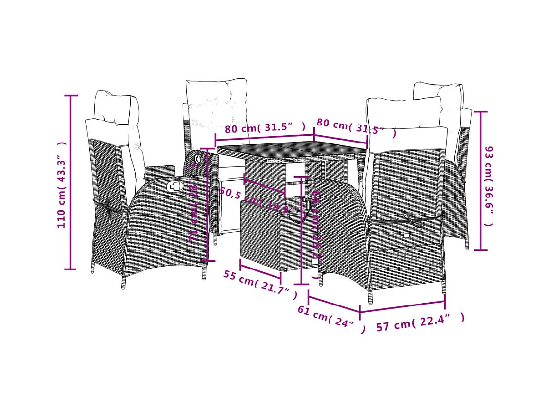 Ensemble à manger de jardin coussins 5pcs Noir Résine tressée
