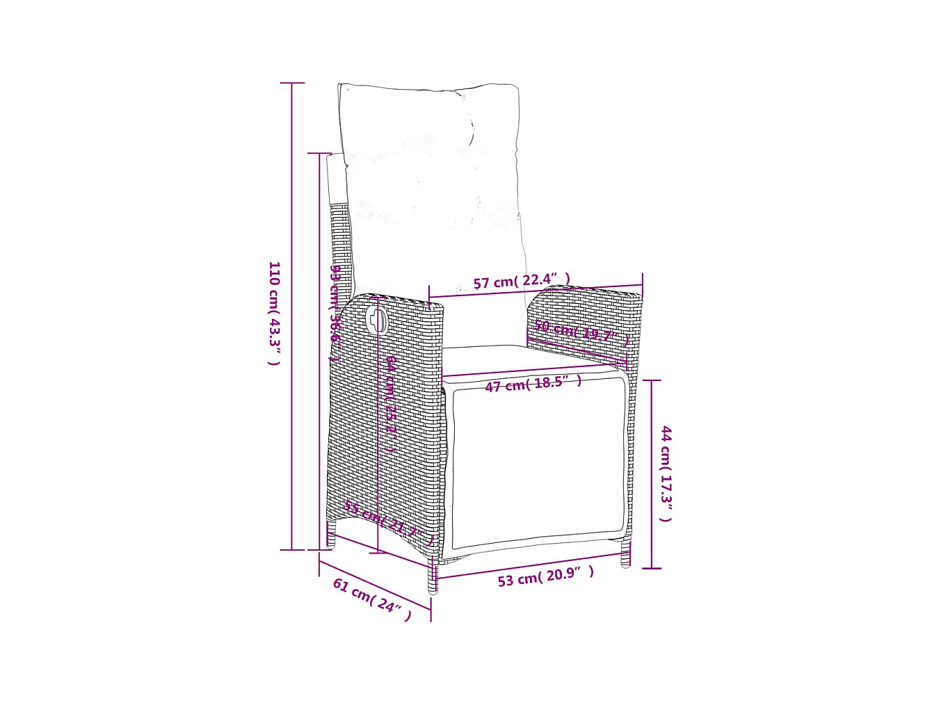 Ensemble à manger de jardin avec coussins 3 pcs Noir
