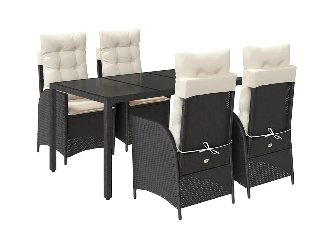 Ensemble à manger de jardin coussins 5pcs Noir Résine tressée
