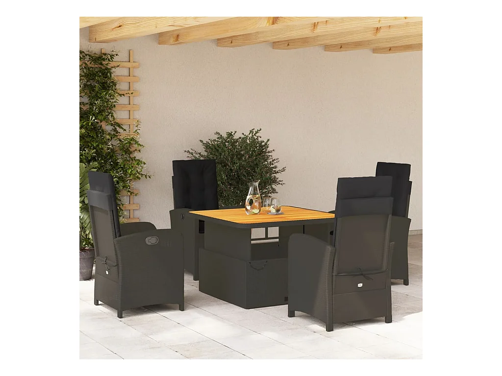 Ensemble à manger de jardin coussins 5pcs Noir Résine tressée