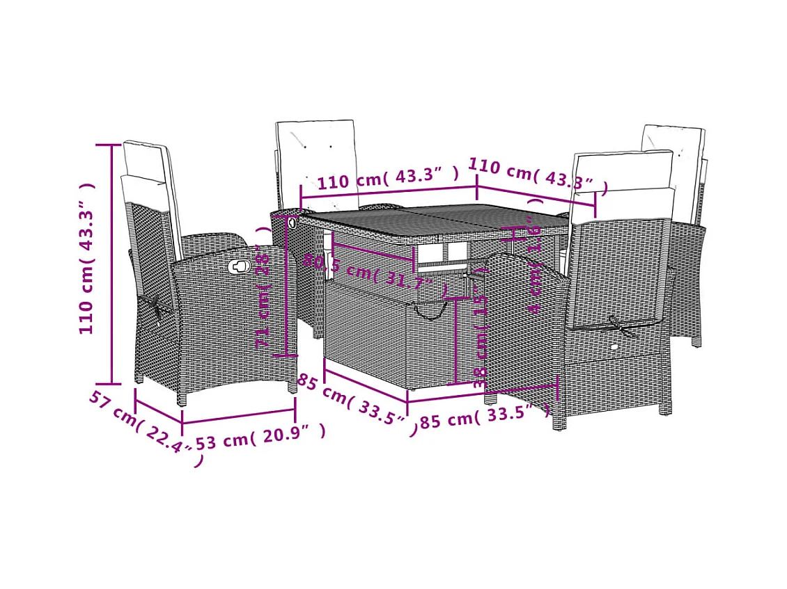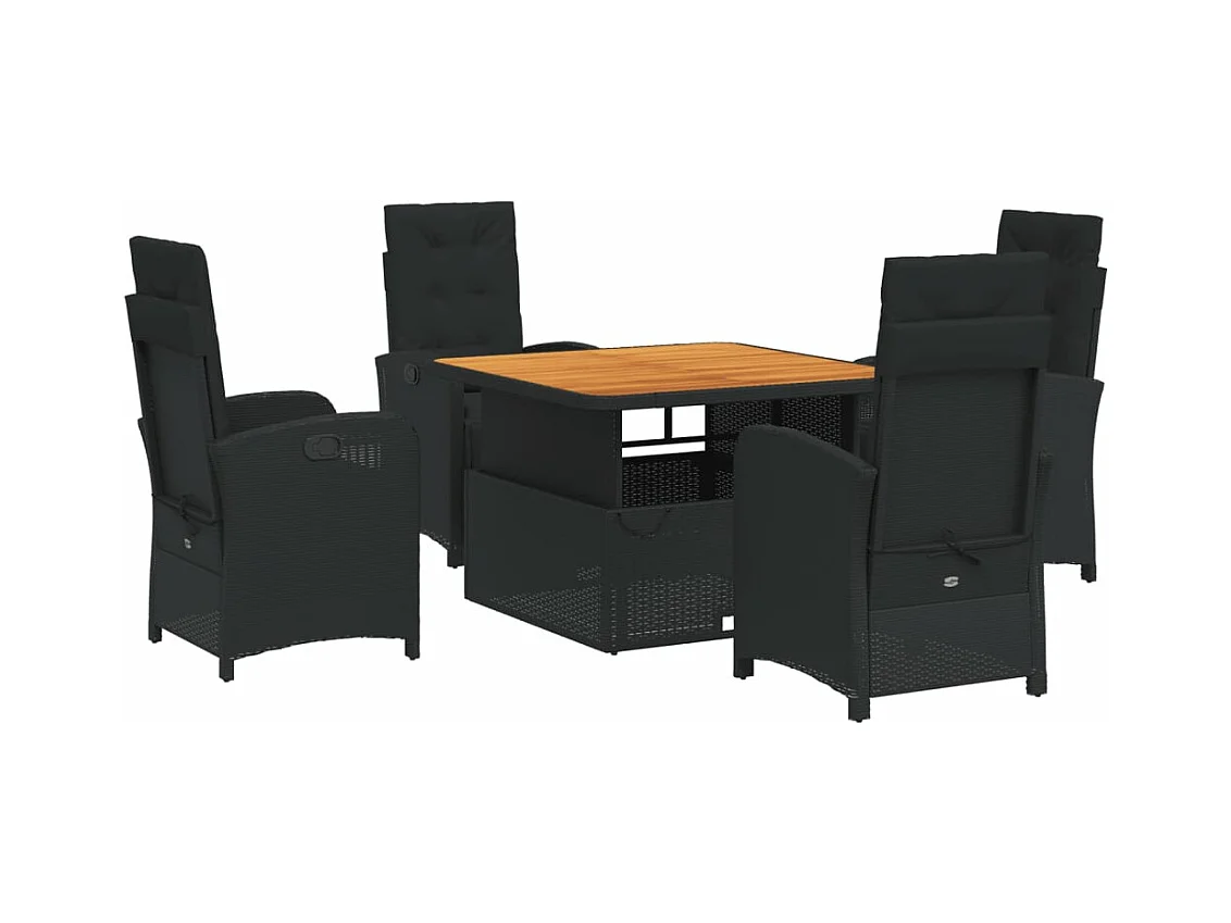 Ensemble à manger de jardin coussins 5pcs Noir Résine tressée