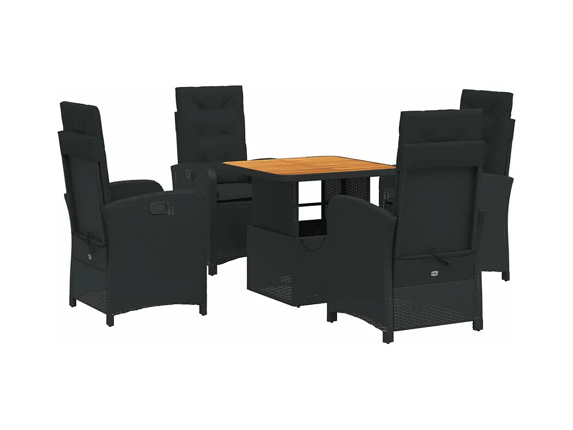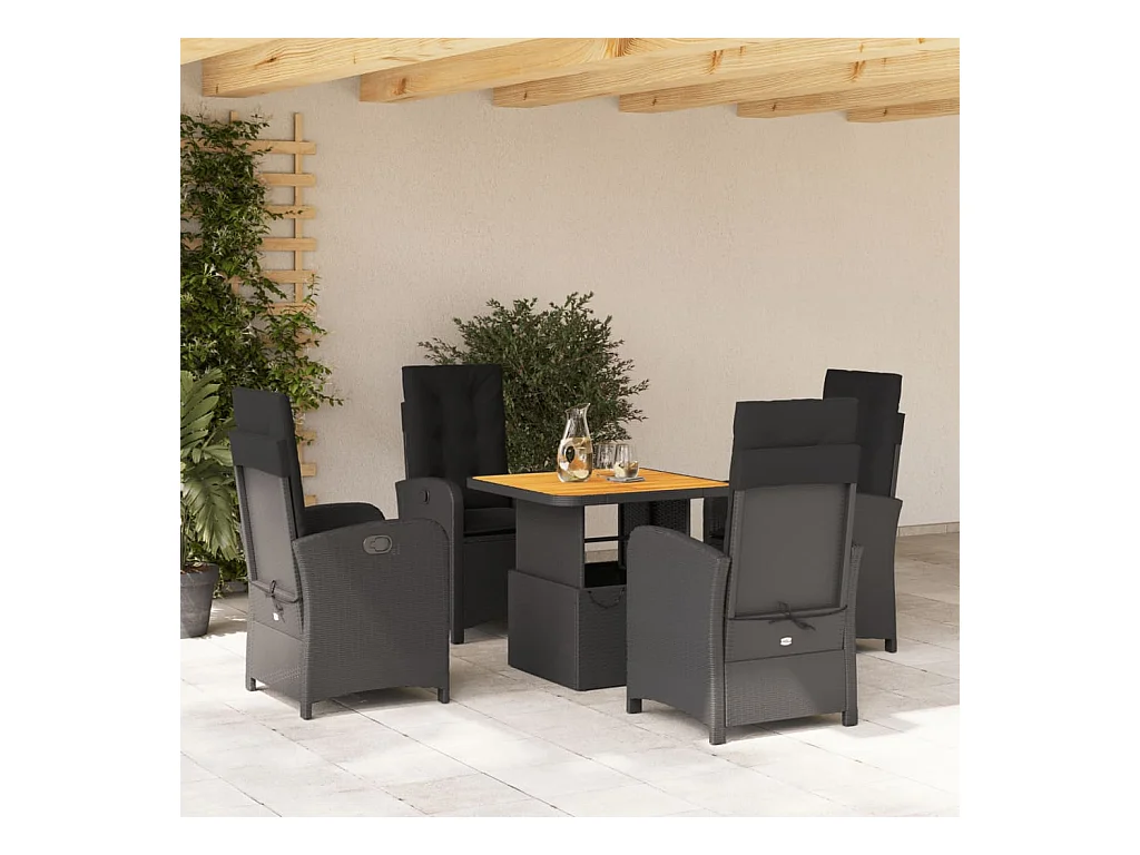 Ensemble à manger de jardin coussins 5pcs Noir Résine tressée