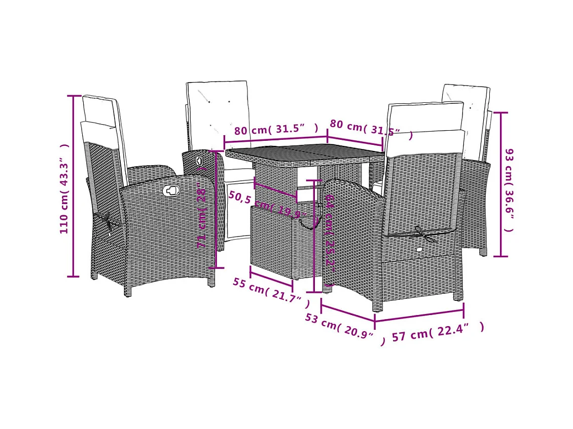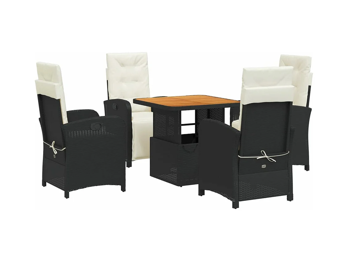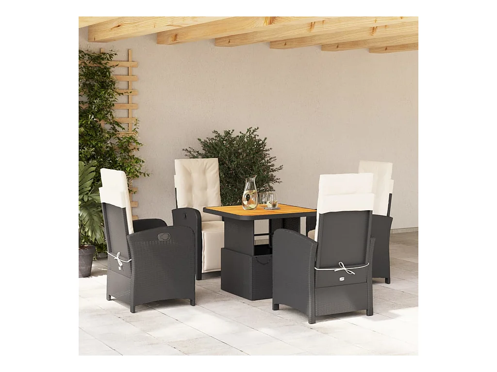 Ensemble à manger de jardin coussins 5pcs Noir Résine tressée