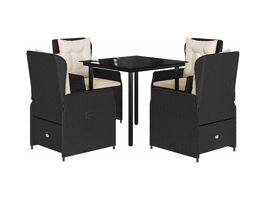 Ensemble à manger de jardin coussins 5pcs Noir Résine tressée