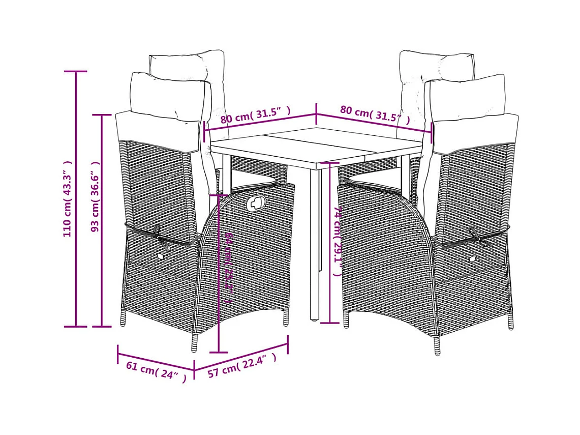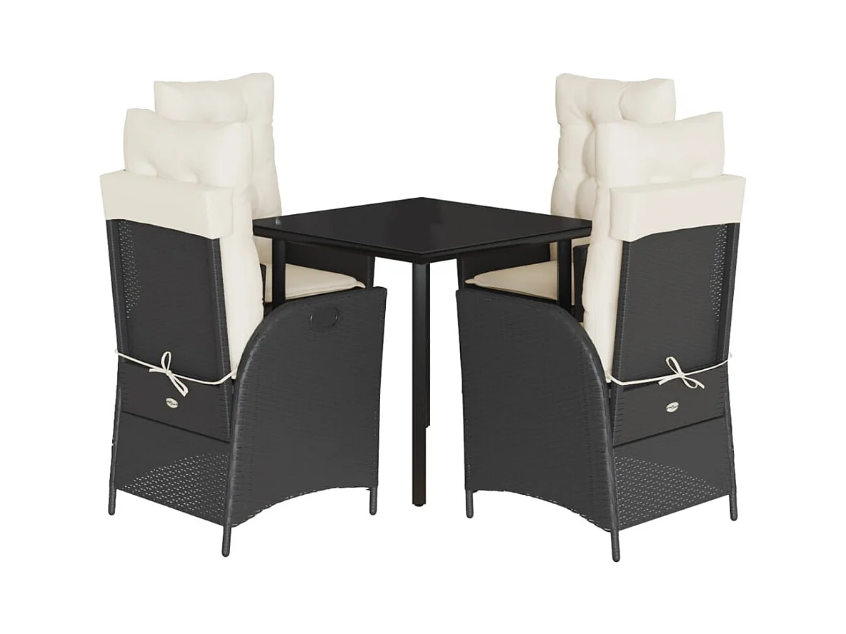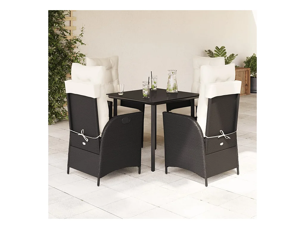 Ensemble à manger de jardin coussins 5pcs Noir Résine tressée