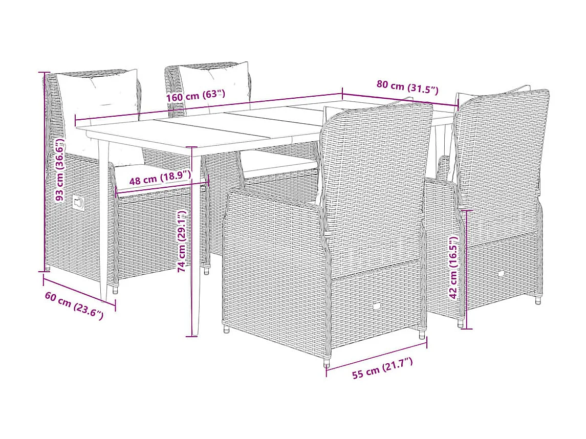Ensemble à manger de jardin coussins 5pcs Noir Résine tressée