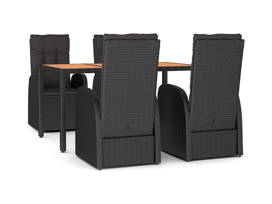 Ensemble à manger de jardin coussins 5pcs Noir Résine tressée