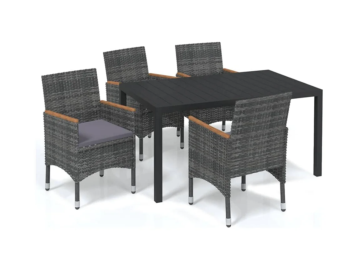 Ensemble à manger de jardin coussins 5pcs Résine tressée Gris