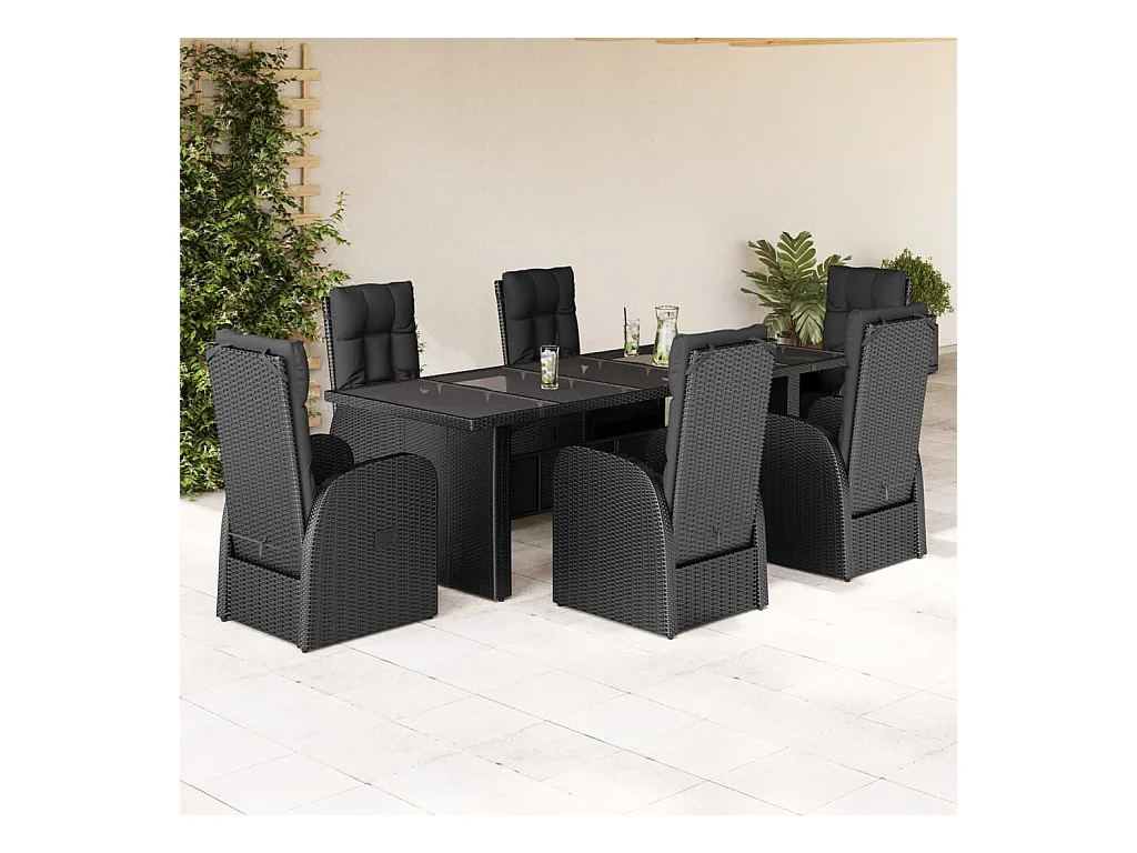 Ensemble à manger de jardin coussins 7 pcs noir résine tressée