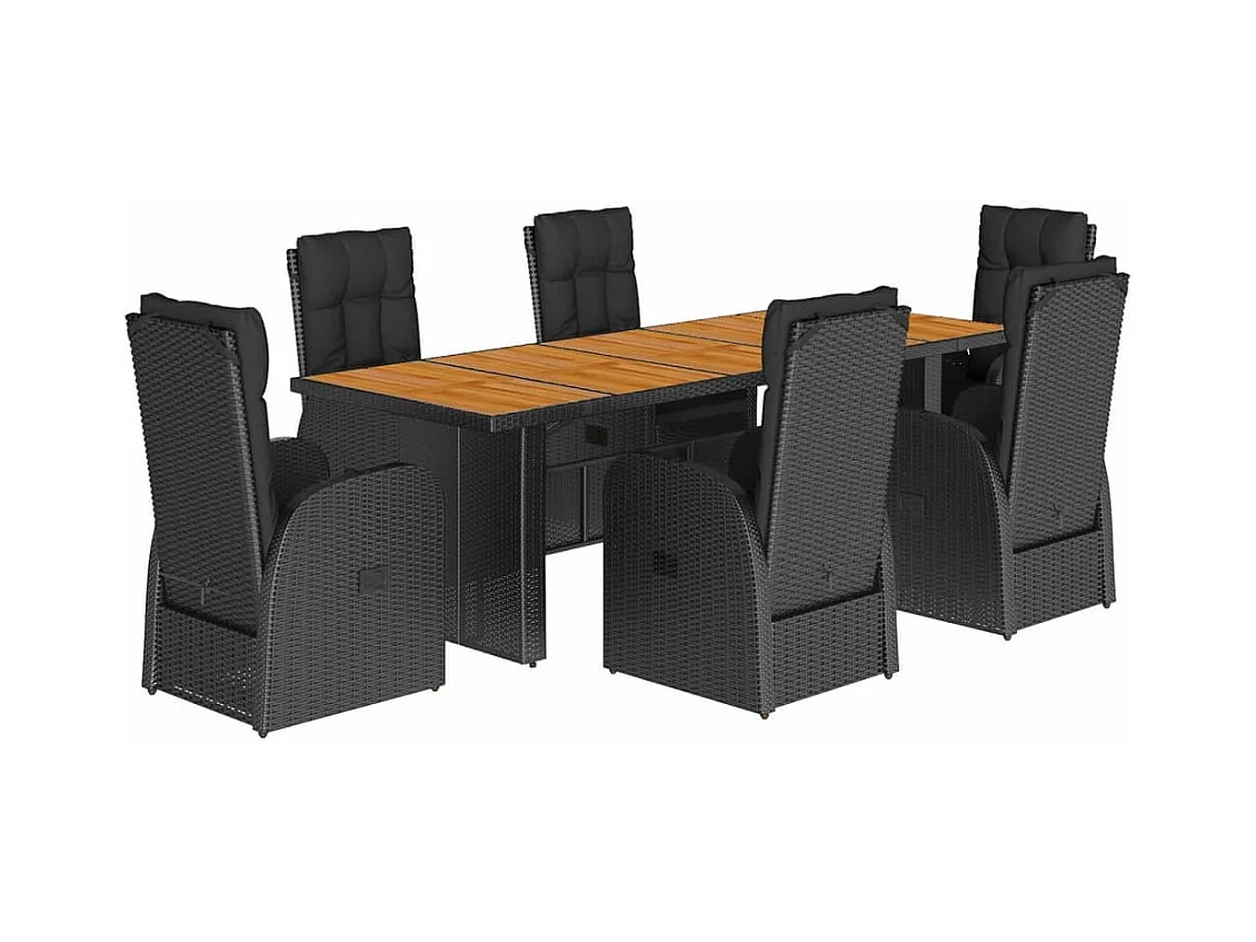 Ensemble à manger de jardin et coussins 7 pièces noir rotin acacia