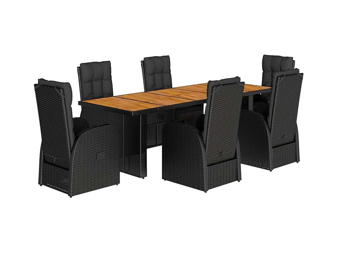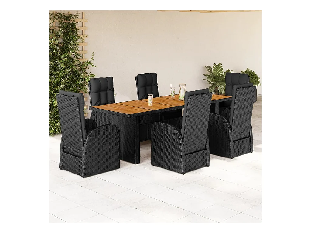 Ensemble à manger de jardin et coussins 7 pièces noir rotin acacia