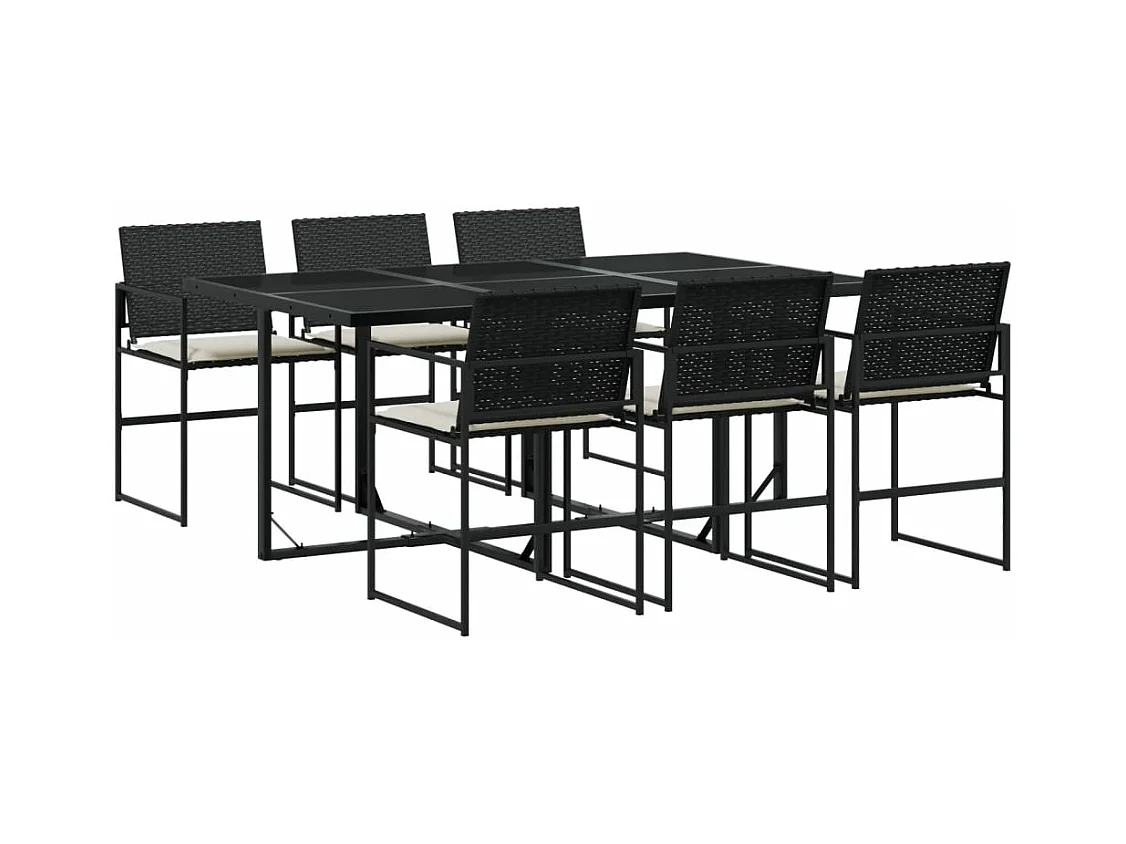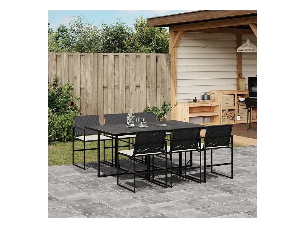 Ensemble à manger de jardin coussins 7 pièces noir résine tressée