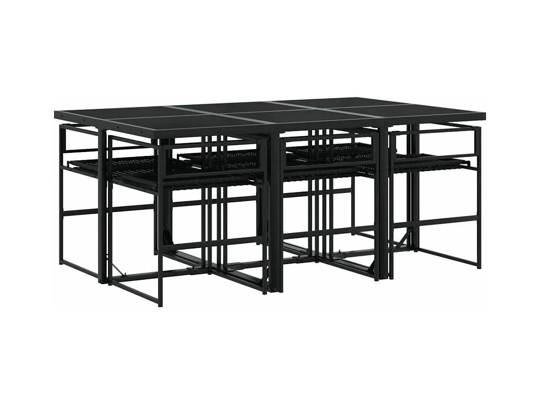 Ensemble à manger de jardin 7 pièces Noir Résine tressée