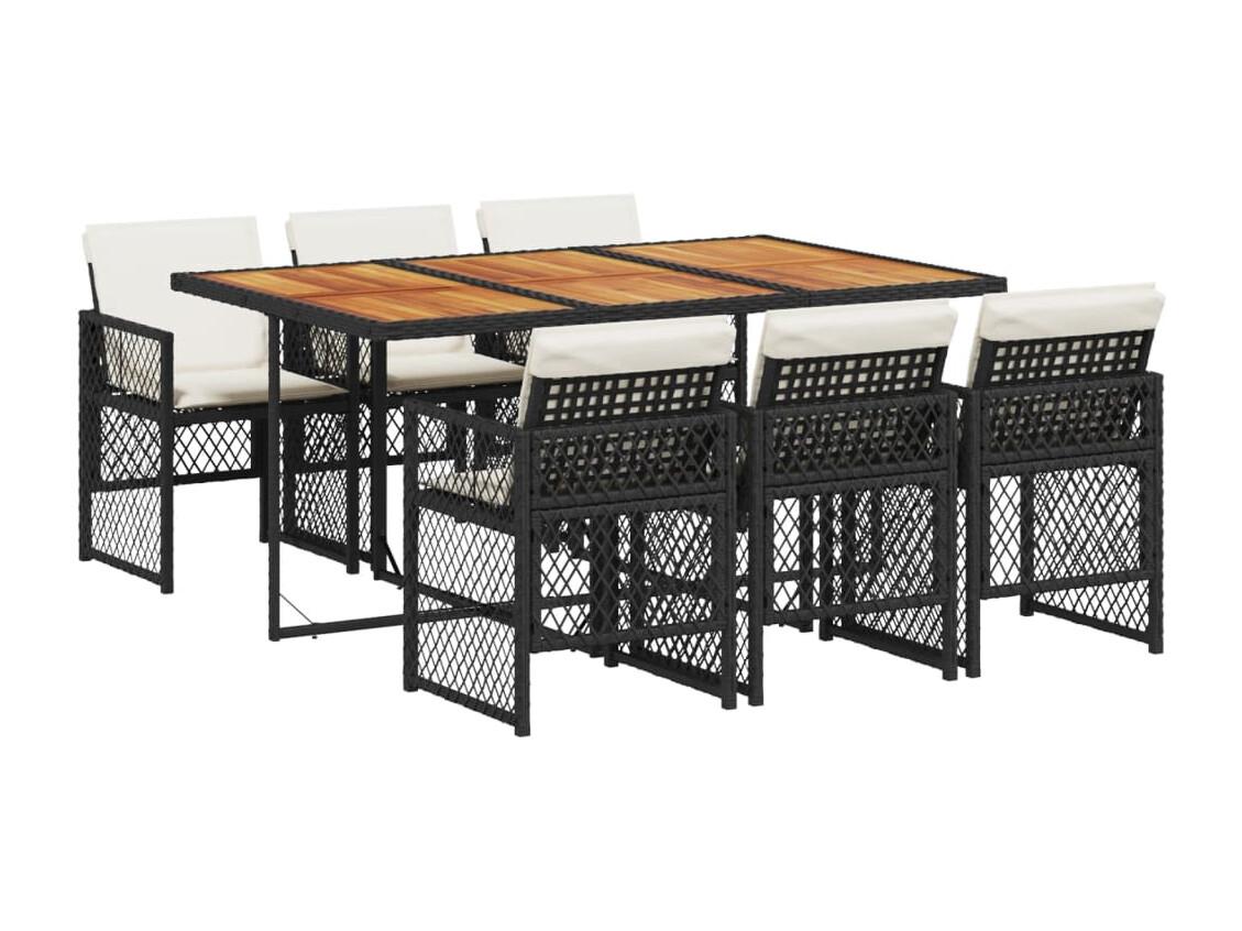 Ensemble à manger de jardin coussins 7 pièces noir résine tressée
